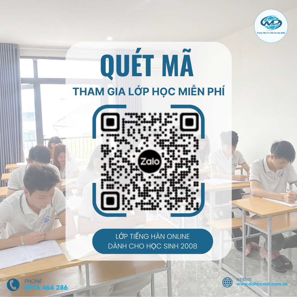 Hiểu được nhu cầu đó, M&Đ tổ chức lớp học tiếng Hàn miễn phí dành riêng cho học viên sinh năm 2008, giúp các bạn làm quen với ngôn ngữ trước khi chính thức bước vào lộ trình du học.